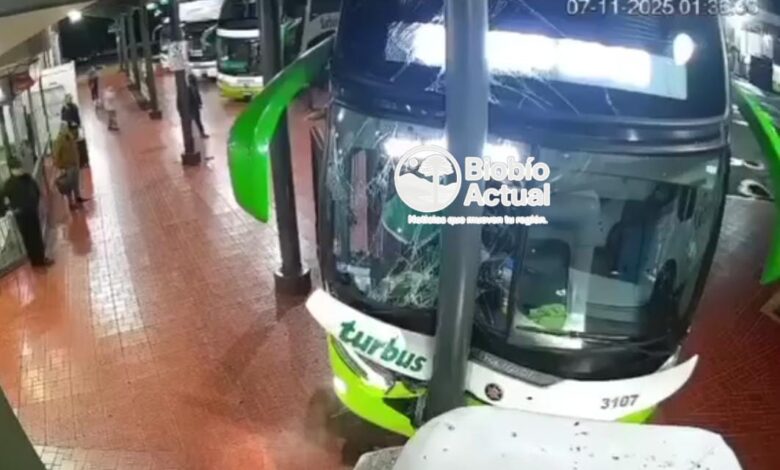 Un bus de la empresa Tur Bus protagonizó un accidente al ingresar al terminal de Los Ángeles, tras impactar con un pilar de la estructura.